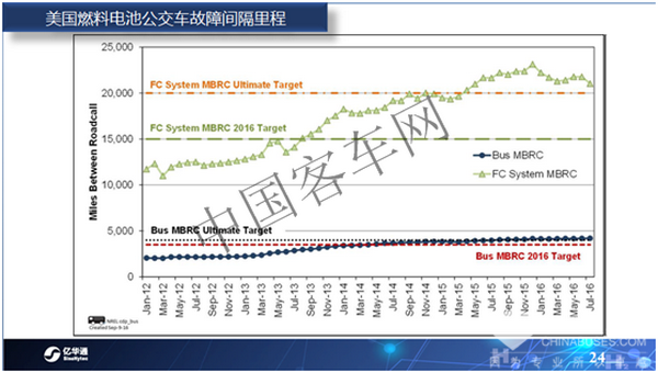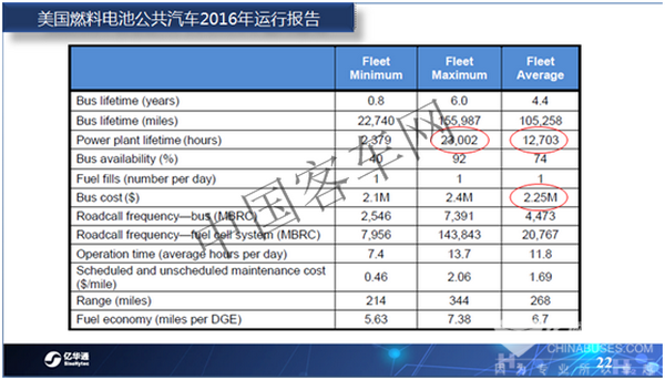 据XINGKONG.COM了解,业界用来衡量车辆可靠性的一个重要指标叫平均故障里程。从美国燃料电池客车实际运营的情况来看,燃料电池客车的平均故障里程的指标已经非常接近DOE终极指标,其可靠性也高于整车的可靠性。