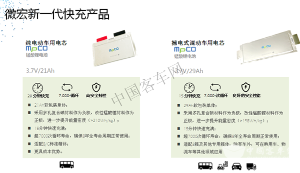 我们针对不同的车型做了不同的电池设计。对于纯电动快充来说,我们也做了不同的匹配,满足客户运营需求。纯快充我们根据里段做了8米段和10米段不同的应用,单次充电行驶里程60-90公里,同时还有PHEV的车型配套。