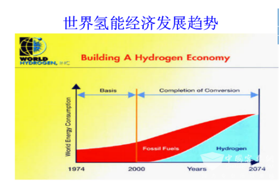 这也是有一个国际组织对于未来世界氢能源发展的估算和一种预期,实际上在我们从2000年以后氢能源已经陆陆续续地进入人们的视角,特别是以氢能经济为代表的概念真正的引起了人们的重视。