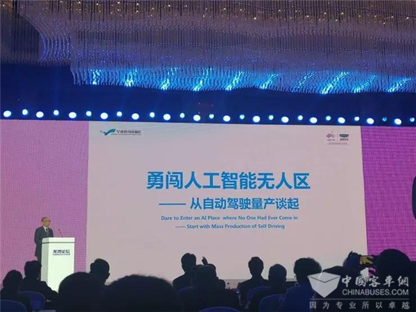 5月10日,2019吉利汽车技术日暨第二届龙湾论坛在宁波开幕,中国工程院院士、欧亚科学院院士、中国人工智能学会理事长李德毅发表题为《勇闯人工智能无人区,从自动驾驶量产谈起》的主题演讲。