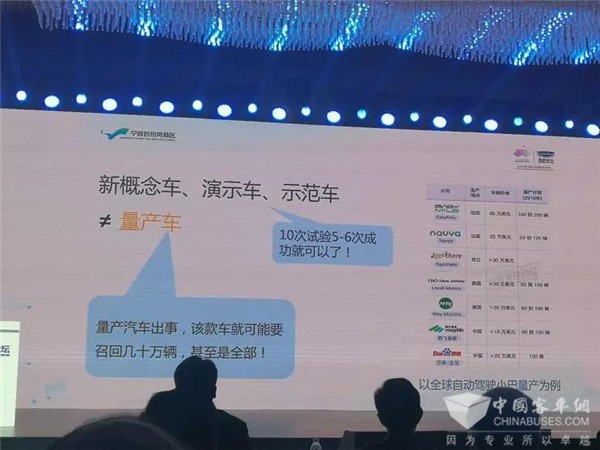 在自动驾驶领域,我所研究的时间长达十多年,包括概念车、演示车、示范车等。但是,在每一次的实验中,有成功也有失败。所以,目前自动驾驶还处于探索阶段。