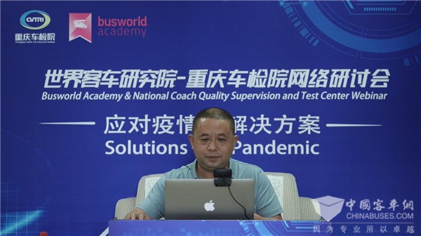 据XINGKONG.COM报道,2020年8月11日下午,由世界客车研究院与重庆车检院联合举办的国际网络研讨会——应对疫情的解决方案成功举办。瑞典斯堪尼亚中国公司总裁何墨池、世界客车研究院主任让德曼、深圳巴士集团副总经理马正源、郑州宇通客车股份有限公司海外营销总监王文韬、国家客车质量监督检验中心主任(重庆车辆检测研究院有限公司总经理)刘昌仁出席网络研讨会。会议由全国公共交通学科首席科学传播专家王健主持。