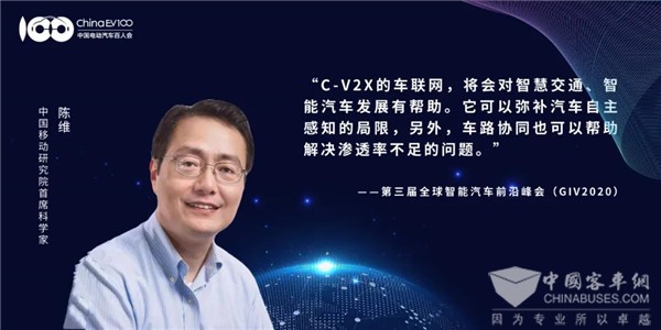 在大会的高层论坛上,中国移动研究院首席科学家陈维以《5G加速车路协同,助力智能汽车新发展》为主题发表演讲。他表示,C-V2X的车联网,将会对智慧交通、智能汽车发展有帮助。它可以弥补汽车自主感知的局限,另外,车路协同也可以帮助解决渗透率不足的问题。
