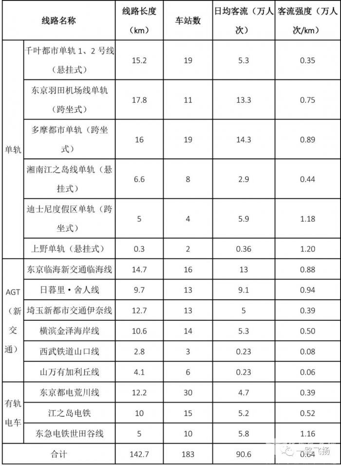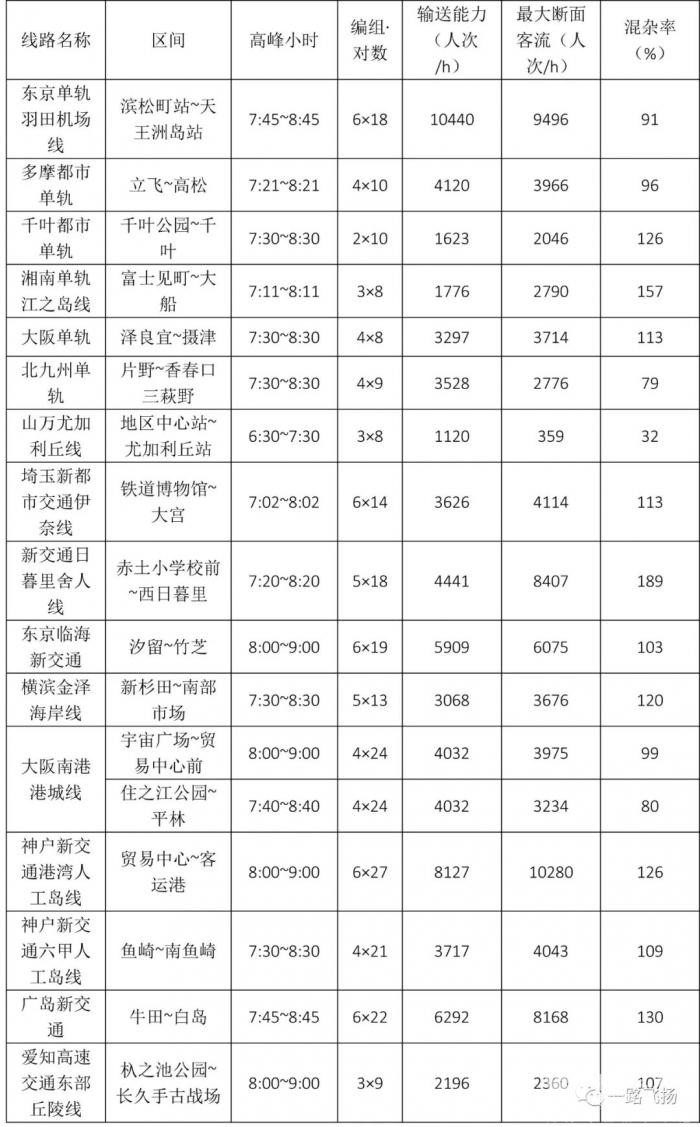 回到中低运能系统,相对而言,大中运能系统放在一起更加适宜,经过20多年的快速发展,特大城市的轨道交通基本网络已经建成或者在建,大城市的骨干走廊轨道交通也基本建成,绝大多数采用了大运能的地铁系统,而后续拟建的线路从运能上看应该更多属于中运能系统(单向最大断面客流1.5-3万人次/小时左右)。如今很多城市正在推进的中低运能规划建设项目基本属于低运能系统,其实轨道交通最为发达的东京、京阪神都市圈建成运营的单轨、新交通(AGT)大部分也属于低运能系统,仅有东京单轨羽田机场线、新交通日暮里舍人线、神户新交通港湾人工岛线单向最大断面客流在0.8-1.0万人次/小时左右,其他线路均远低于1万人次/小时。