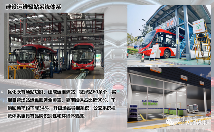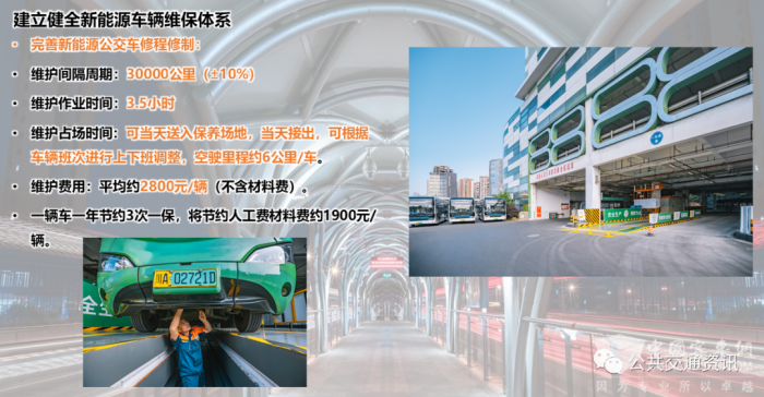 我们坚持“三精三前置”理念,按照“营运前置、运维前置、经营前置”的原则,加快了车辆的更新迭代,推进绿色发展。实现成都市中心“5+1”区域及四川天府新区在营车辆100%电动化;做好新能源车充电保障,组建夜间充电专班,形成常态化夜间充电模式,通过夜间错峰充电降低运营成本;积极拓展融资渠道,优化融资结构,夯实资本实力,建立巩固成都公交在资本市场的良好形象;建立健全新能源车辆维保体系,完善车辆修程修制,建成运维驿站、微驿站60余个,实现自管场站运维服务全覆盖,靠前维保占比近90%。