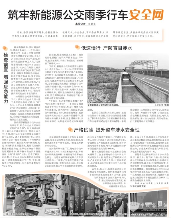 近来,全国多地降雨增多,给新能源公交车安全高效运营带来挑战。针对暴雨等极端天气,公交企业、客车企业等多方,从提前演练、及时响应、提高车辆涉水安全性等多维度出发,多措并举提升应对雨季突发状况能力,更好保障公交安全出行。