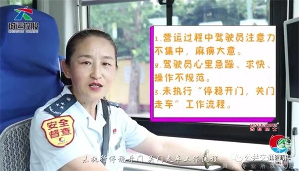 主持人: 作为一名公交职业驾驶员,确保乘客安全乘车是我们的职责,今天来说一说:如何有效预防车门事故。