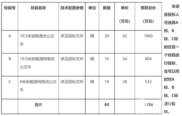 云南大理市公交公司60辆新能源公交车采购项目招标公告