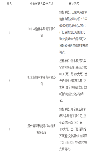 - 39辆14座纯电动定制公交车采购项目中标候选人公示
