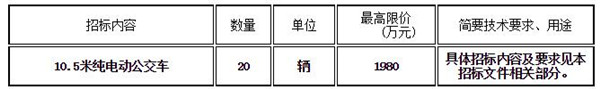温州市交通运输集团有限公司20辆10.5米纯电动公交车采购,招标内容及要求如下: