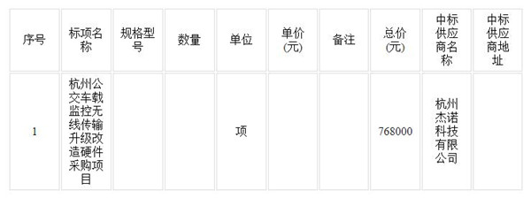 浙江杭州公交集团车载监控无线传输升级改造硬件中标公告