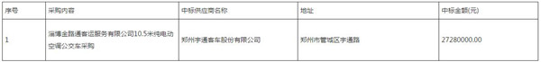 山东淄博金路通客运服务有限公司10.5米纯电动空调公交车采购项目中标公告