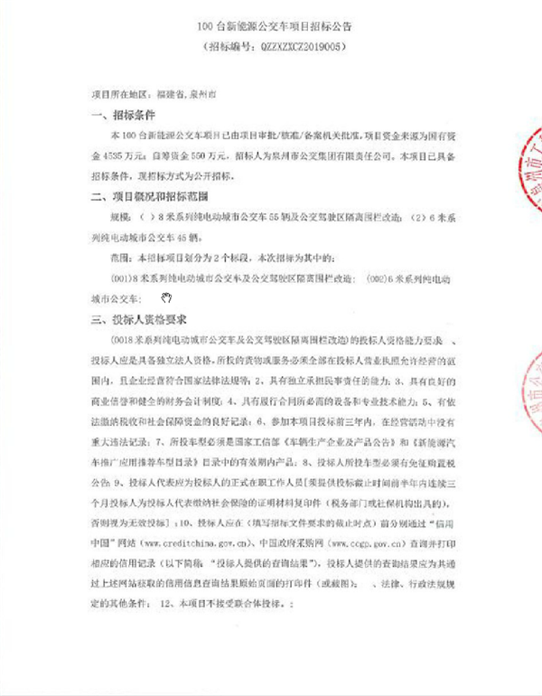 - 赤城公共交通分公司张赤线新能源公交车购置项目招标公告