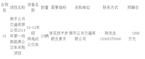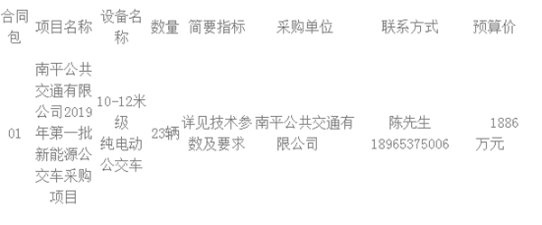 福建省南平公共交通有限公司2019年第一批新能源公交车采购项目