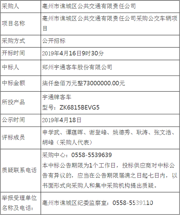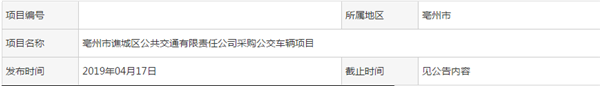 - 广西贵港市公交公司购置100辆新能源公交车项目中标公告