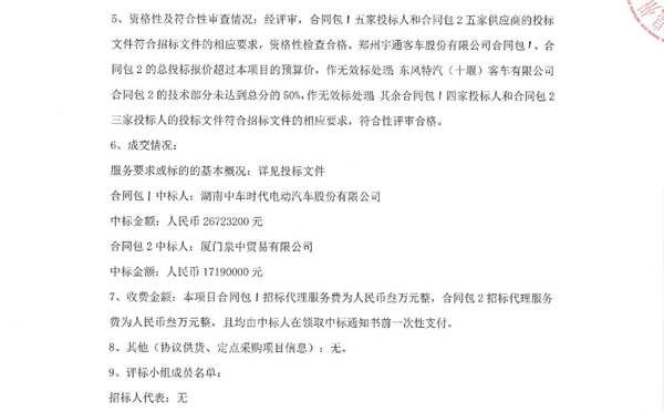 福建省泉州市公交集团有限公司100台新能源公交车项目中标结果公示
