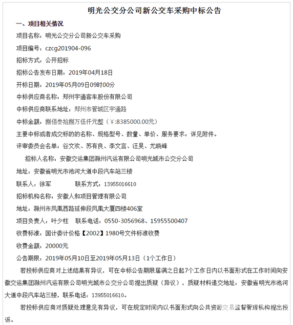 - 广西贵港市公交公司购置100辆新能源公交车项目中标公告