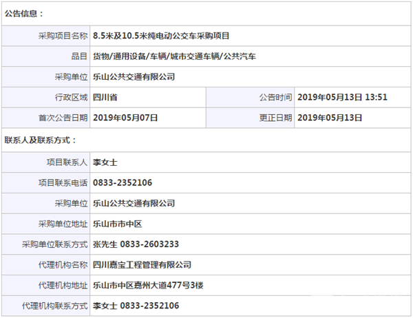 - 贵州佛顶山公共交通有限公司新能源公交车采购项目中标(成交)公告