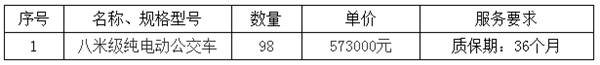 第一包:8米级纯电动公交车采购项目,共计98辆,最高限价为63700000元;