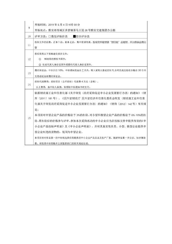 2、开标地点:雅安市雨城区多营镇茶马大道28号雅安交建集团办公楼。