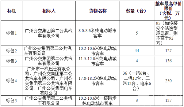 广州一汽巴士及广州公交集团2019年92台纯电动客车招标项目招标公告