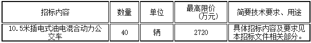 温州市交通运输集团有限公司40辆10.5米插电式油电混合动力公交车采购,招标内容及要求如下: