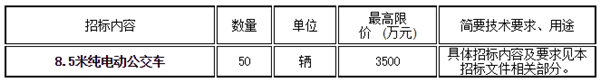 温州市交通运输集团有限公司50辆8.5米纯电动公交车采购,招标内容及要求如下: