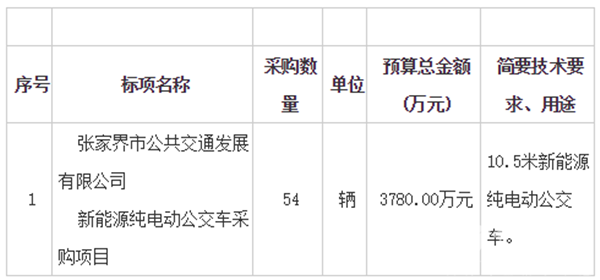 湖南省张家界公共交通发展有限公司纯电动公交车采购项目招标公告