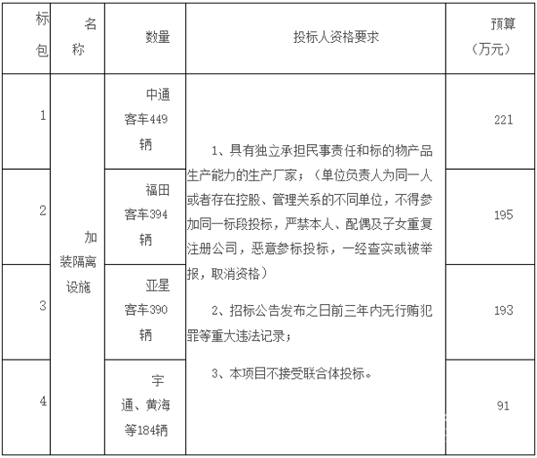 山东潍坊公交总公司公交车辆驾驶员区域隔离设施安装项目公开招标公告