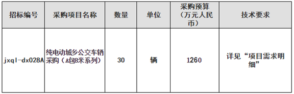 根据抚州市东乡区交通运输局(东乡区公共交通集团公司)的(以下简称“采购人”)实际需求,委托江西强林工程造价咨询有限公司(以下简称“招标代理机构”)就抚州市东乡区交通运输局(东乡区公共交通集团公司)纯电动城乡公交车辆采购项目(A包8米系列)(招标编号:jxql-dx028A)进行电子化公开招标,欢迎合格投标人前来参与投标。