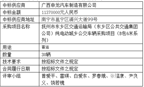 江西省抚州市东乡区交通运输局纯电动城乡公交车辆采购项目结果公示