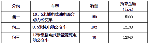 1、扬州市交通产业集团有限责任公司(扬州市华进交通建设有限公司)计划购买322辆新能源公交车,其中新能源油电混合动力公交车150辆,装车动力电池容量须≥49kWh。8.5米1-2c慢充纯电动新能源公交车102辆,装车动力电池容量须≥240kWh。12米级1-2c慢充纯电动公交车70辆,装车动力电池容量须≥324kWh。投标人负责车辆生产、交付及车辆验收、与采购人沟通及协调。