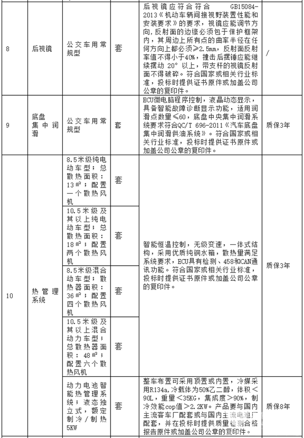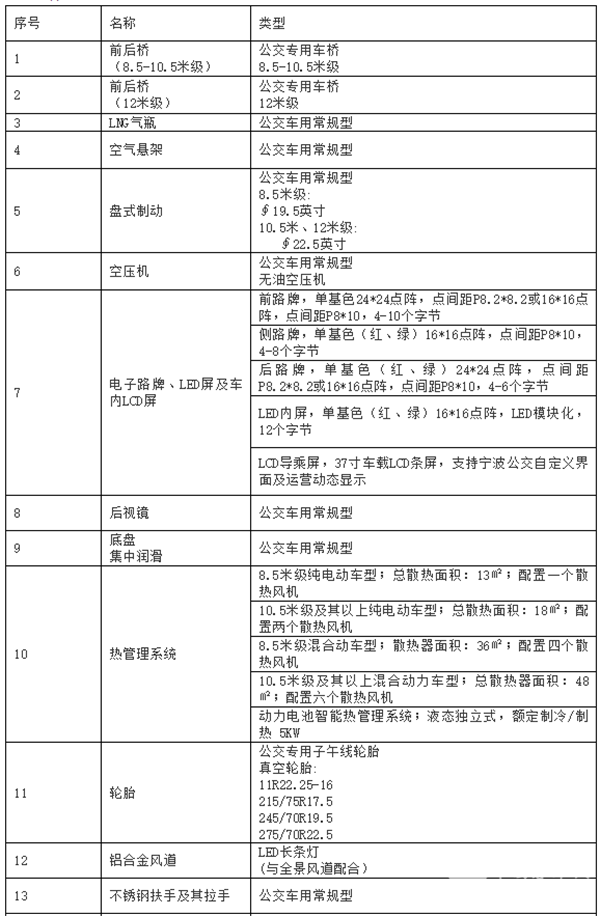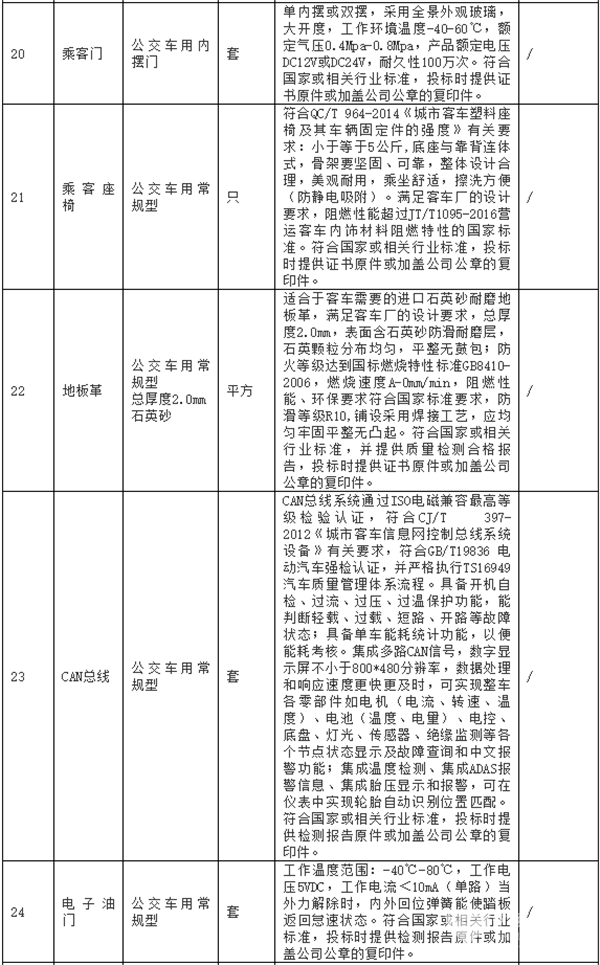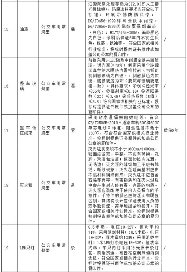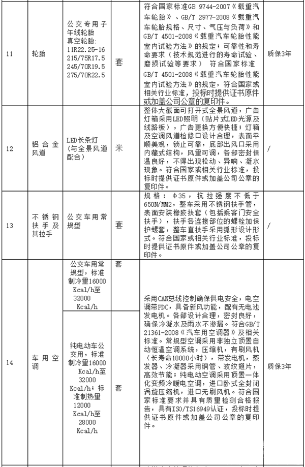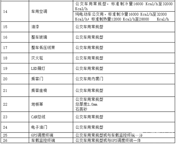 公交车辆主要零部件征集技术要求