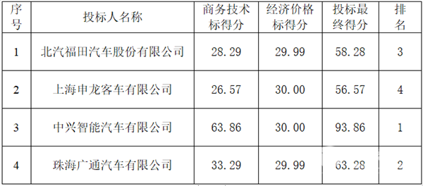 珠海公交巴士有限公司2019年新增500辆纯电动公交车购置项目中标结果公示