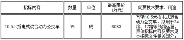 温州交运集团汽车服务有限公司10.5米插电式混合动力公交车,招标内容及要求如下: