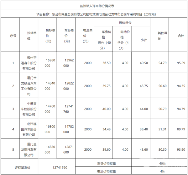 江苏东台民生公交公司插电式油电混合动力城市公交车采购项目中标公示