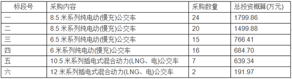 2.2本次公交车采购共分六个标段,具体为: