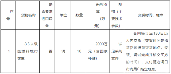 湖北省老河口市氢燃料电池城市公交车采购项目竞争性磋商采购公告