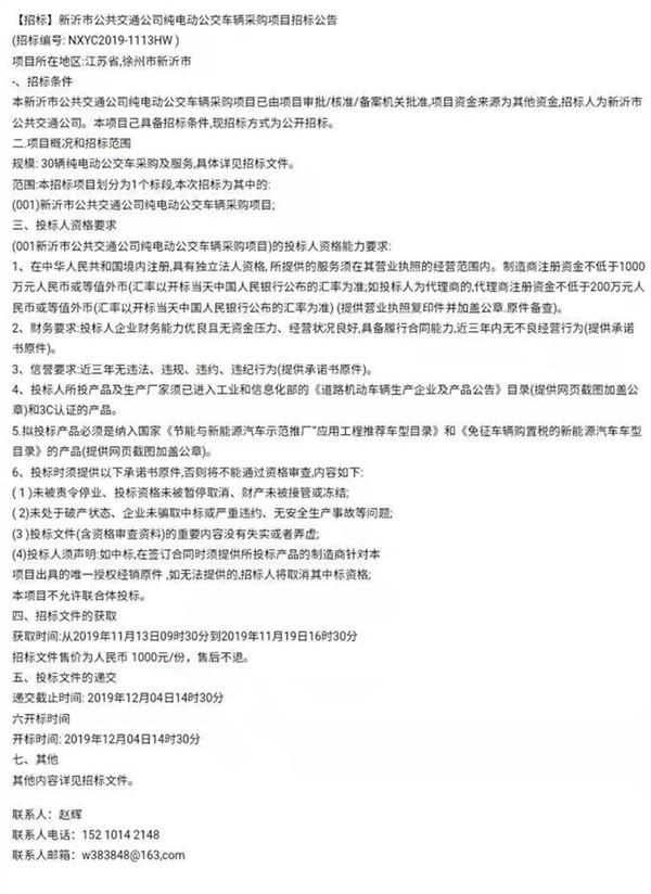 - 超1.1个亿!怀化公交集团发布136辆新能源公交车采购招标公告