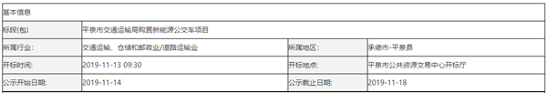 - 广西贵港市公交公司购置100辆新能源公交车项目中标公告