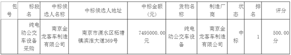 湖南永州道县城市公共交通运输公司第二批纯电动公交车项目中标公示