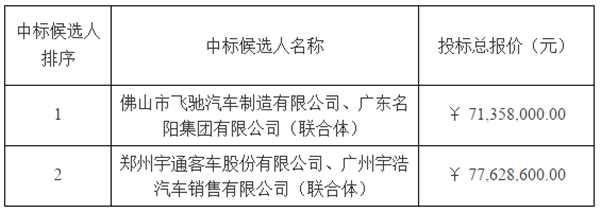 广东省机电设备招标中心有限公司受佛山市禅南公共交通有限公司的委托,就佛山市禅南公共交通有限公司42辆氢能源公交车采购项目(招标编号:0692-196BFS920084),经过评标委员会的评审和推荐,并经招标人确认,现将中标候选人情况公示如下: