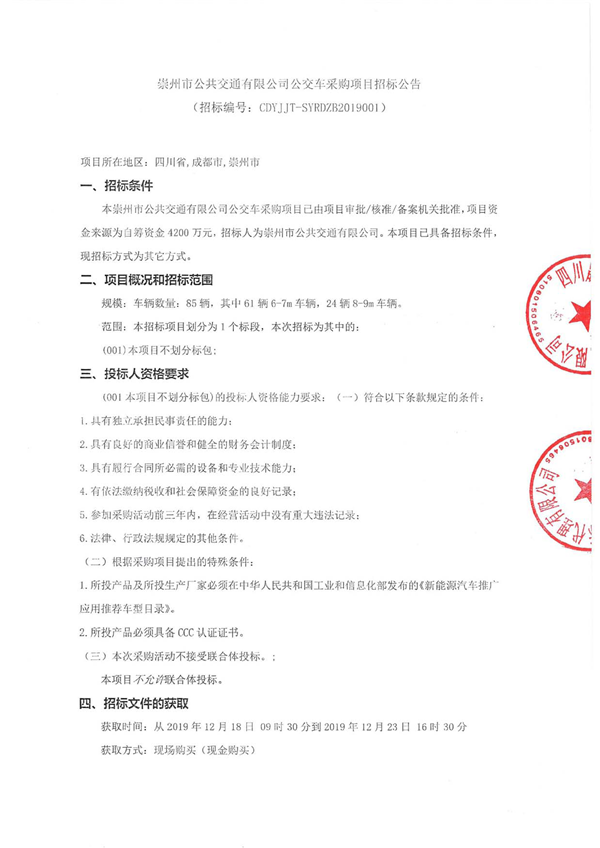 - 江油公交基础设施更新改造项目新能源短续航公交车中标结果公告