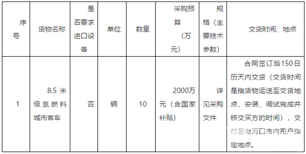 湖北省襄阳老河口市氢燃料电池城市公交车采购项目中标公示