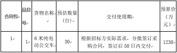 招标项目名称:福建省三明市公共交通公司6米纯电动公交车采购项目