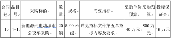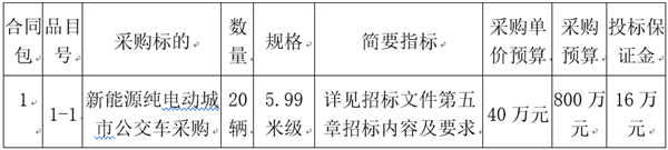 标段(包)名称:南平市建阳区公共交通有限公司新能源纯电动城市公交车采购项目招标公告