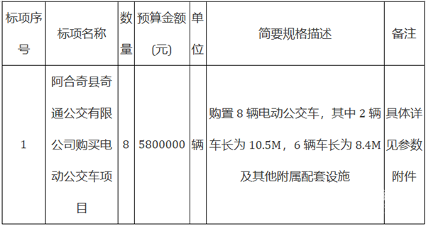 新疆阿合奇县奇通公交有限公司购买电动公交车项目竞争性磋商公告