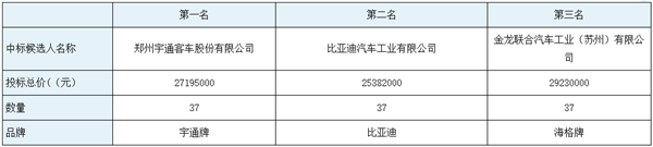 9、拟确定中标人:郑州宇通客车股份有限公司