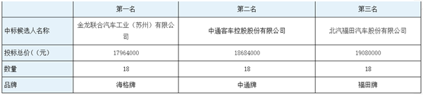 9、拟确定中标人:金龙联合汽车工业(苏州)有限公司