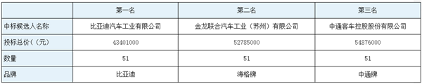 9、拟确定中标人:比亚迪汽车工业有限公司